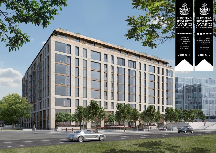 Среди номинантов мировых девелоперских компаний организаторы премии признали One Trinity Place лучшим объектом элитной недвижимости России как за инновационный подход, дизайн и уникальность архитектурной концепции, так и за дизайн и качество отделки интерьеров. Интерьеры квартир, представленные модельным офисом проекта, признаны непревзойденными в Санкт-Петербурге.