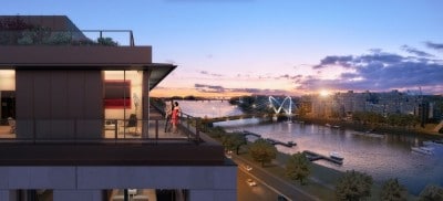 Пентхаусы One Trinity Place отличает простор открытых пространств и особое качество отделки – паркет и полы из широкой доски, изысканный мрамор и мягкая кожа, встроенная мебель, отделанный камнем камин, медиа стена в гостиной и множество интересных архитектурных деталей.